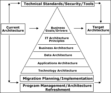 Applications Architecture : the systems and user interfaces that define how the business functions are performed.